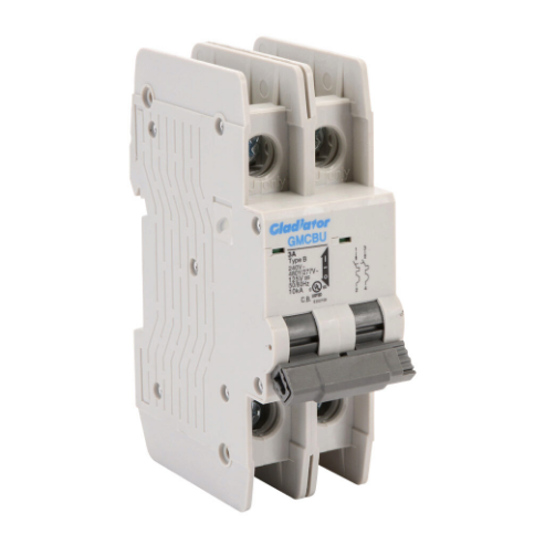 GLADIATOR GMCBU-2B-3 Miniature Circuit Breaker, 3A, 480Y/ 277 VAC/ 125 VDC, 2-Pole, B Curve, Thermal Magnetic