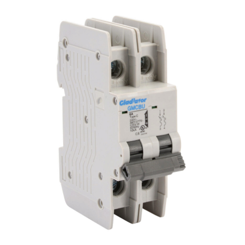 GLADIATOR GMCBU-2C-6 Miniature Circuit Breaker, 6A, 480Y/ 277 VAC/ 125 VDC, 2-Pole, C Curve, Thermal Magnetic