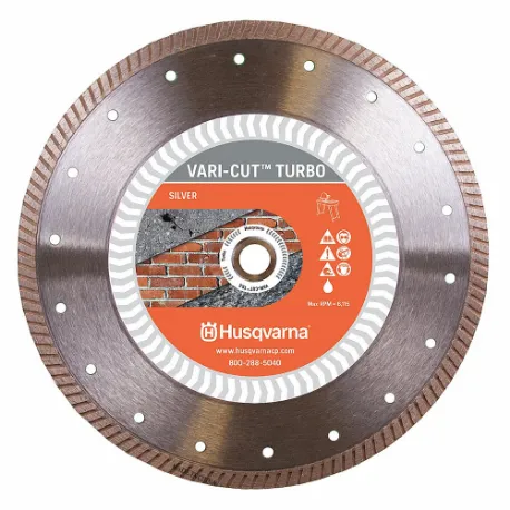 HUSQVARNA Vari-Cut Turbo 7 Diamond Saw Blade, 7 Inch Blade Dia, 5/8 In-7/8 Inch Arbor Size, Wet/Dry, Better, Turbo