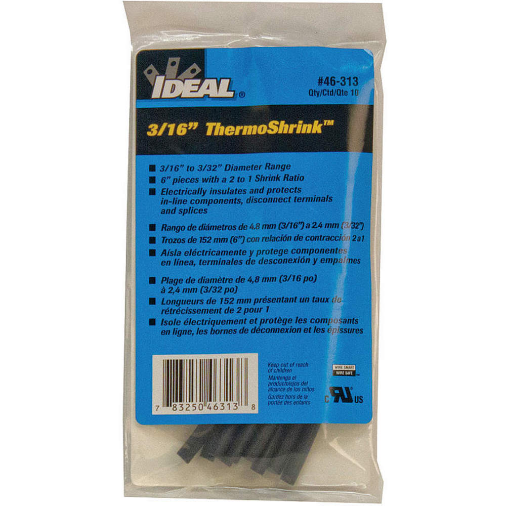 IDEAL 46-313 Shrink Tubing 0.205 Inch Id Black 6 Inch