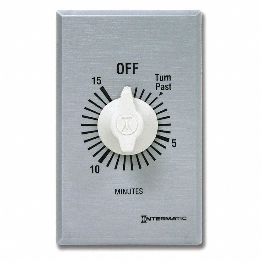 INTERMATIC FF15MC Spring-Wound Timer, 0 to 15 min, Silver, 20A Max. Current At 125V AC, 1 Gang, SPST