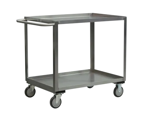 | Product | Model | Distance Between Shelves | Handle Type | Overall Length | Overall Width | Shelf Length | Shelf Width | Caster Dia. | Caster Material | Price | |