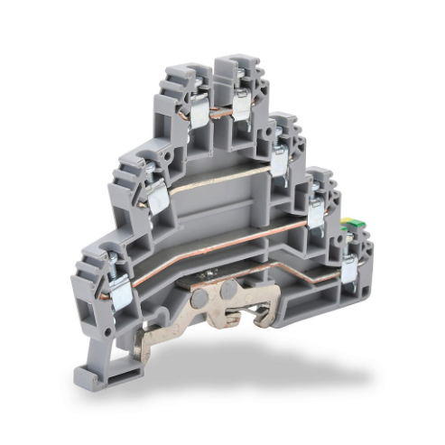 KONNECT-IT KN-TG12 Triple-Level Terminal Block with Ground, Gray, 24A, 35mm Din Rail Mount