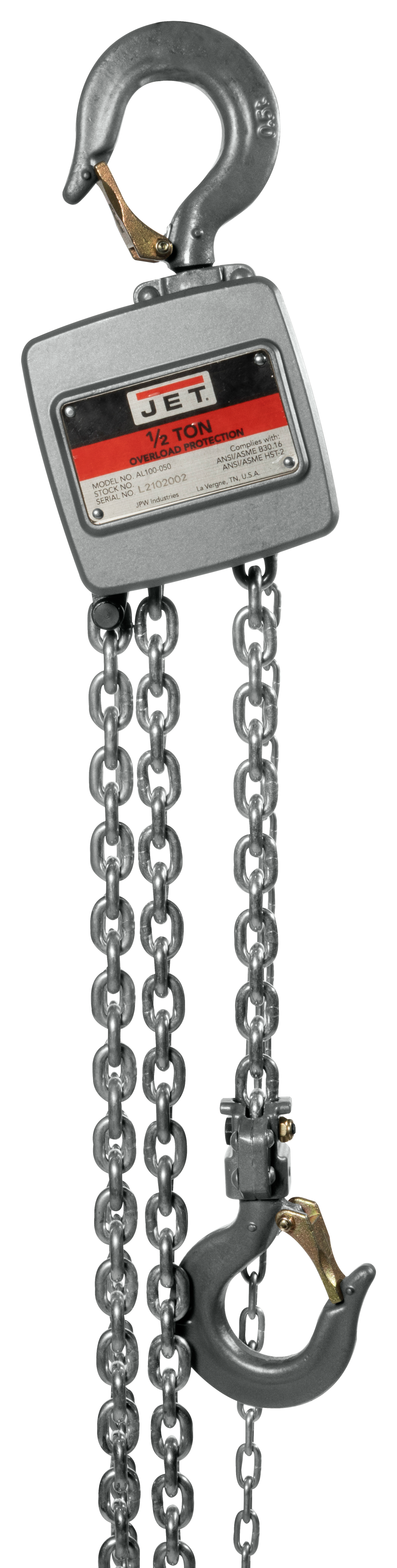 JET TOOLS JT9-133053 AL100-050-20 Chain Hoist, 20 Ton Capacity, 20 Feet Lift Height