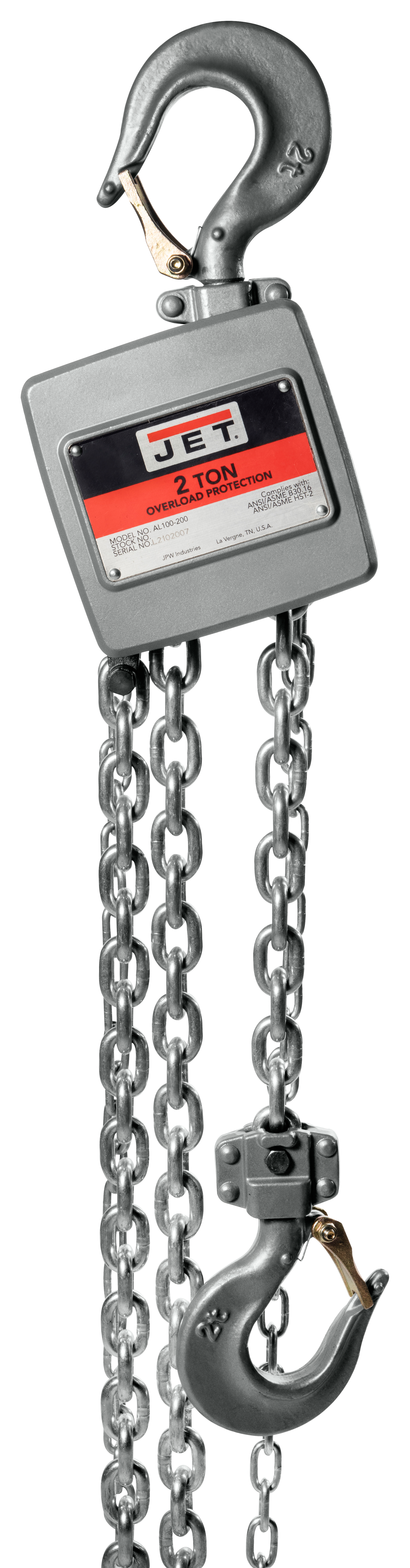 JET TOOLS JT9-133210 AL100-200-10 Chain Hoist, 10 Ton Capacity, 10 Feet Lift Height