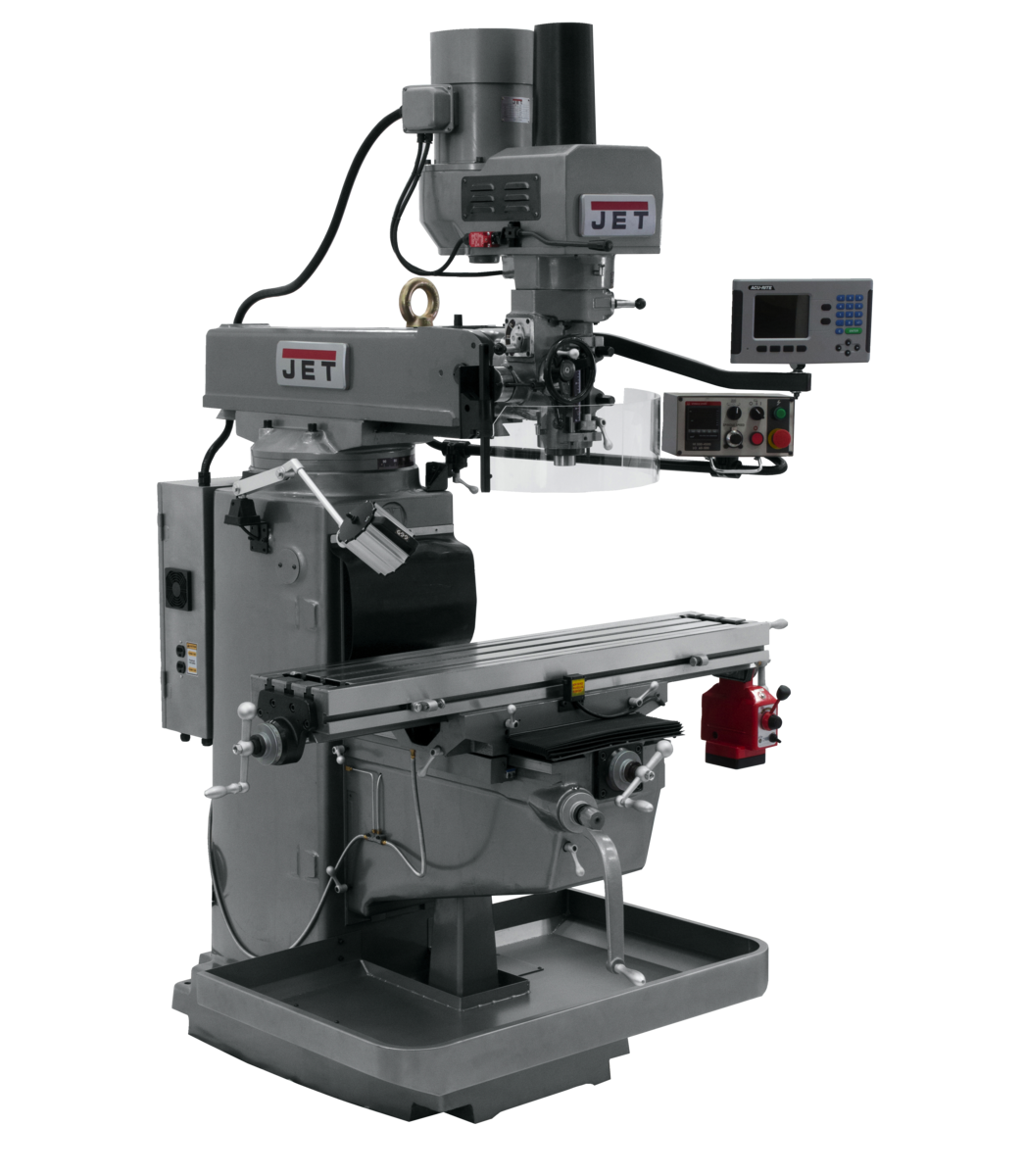 JET TOOLS JT9-690625 Milling Machine, 3-Axis Acu-Rite DRO Knee, X-Axis Powerfeed and Air Powered Dra