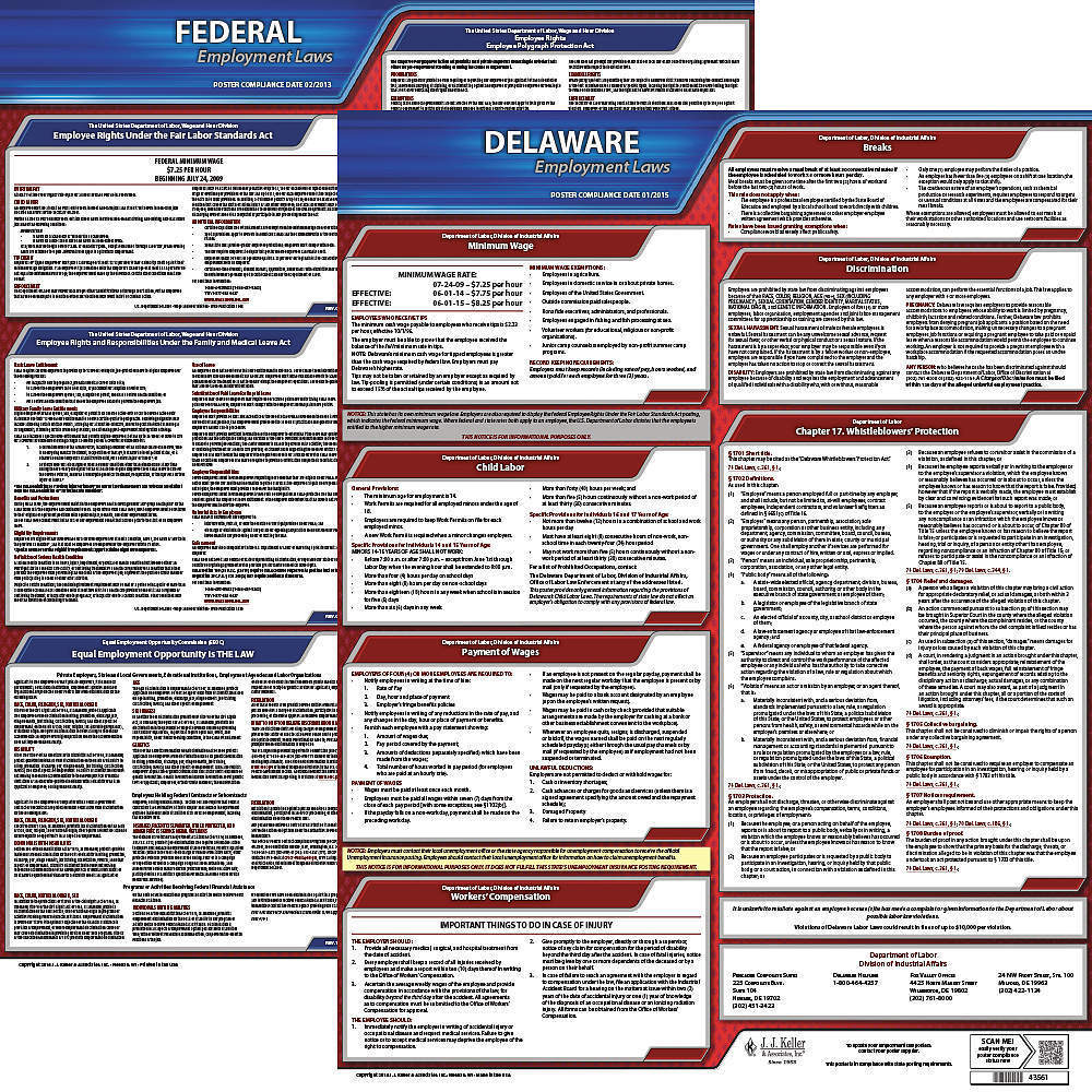 JJ KELLER 100-DE-3 Labor Law Poster Federal / State DE ENG 20 Inch Height 3 Year