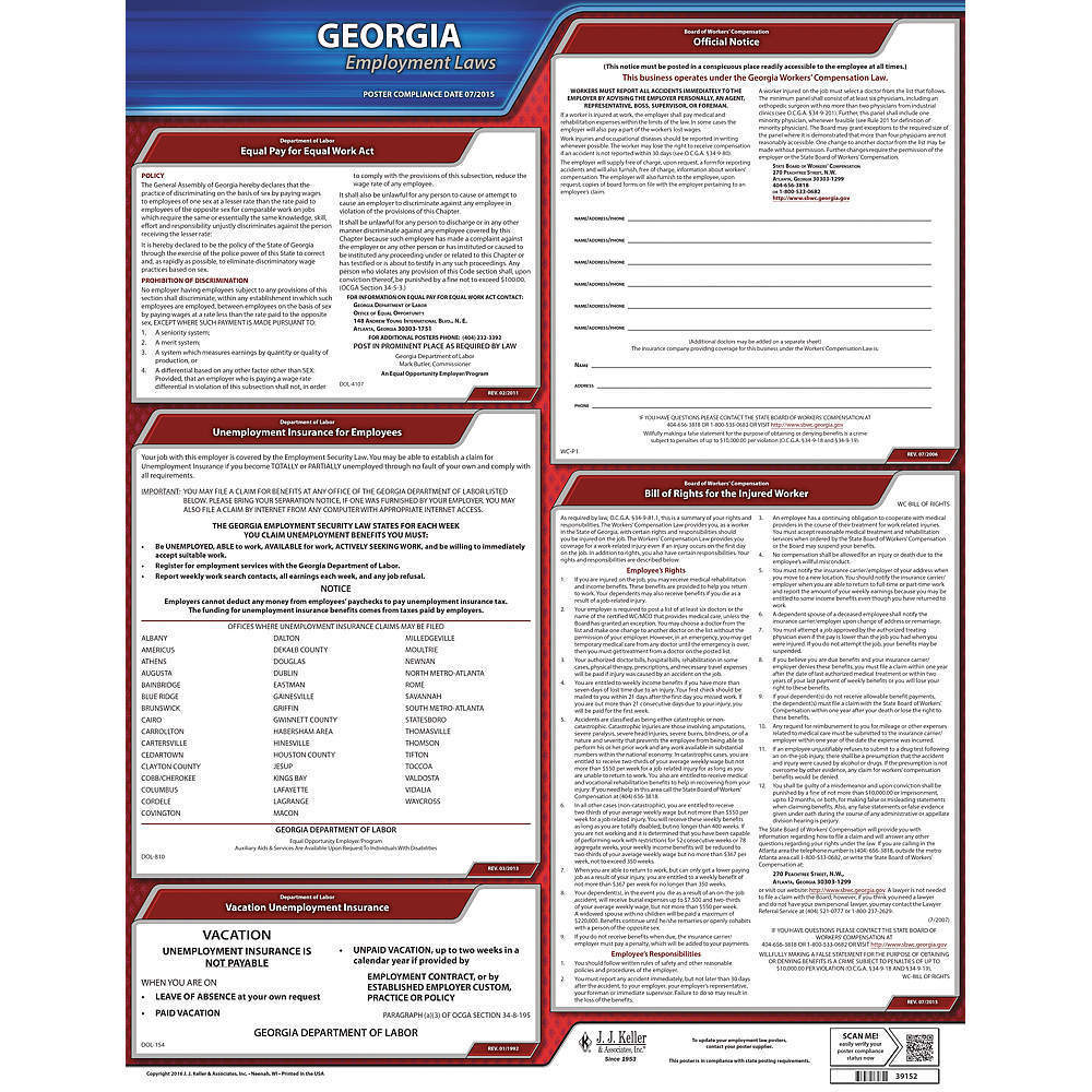 JJ KELLER 100-GA Labor Law Poster State Labor Law GA