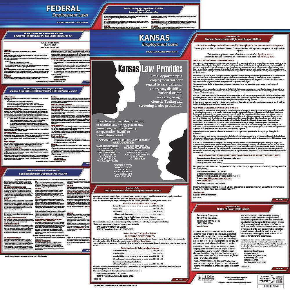 JJ KELLER 100-KS-3 Labor Law Poster Federal / State KS ENG 20 Inch Height 3 Year