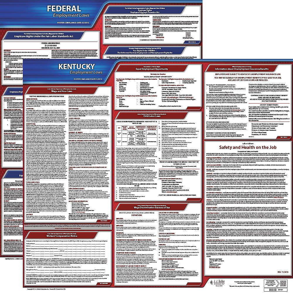 JJ KELLER 100-KY-5 Labor Law Poster Federal and State KY ENG 20 Inch Height 5 Year