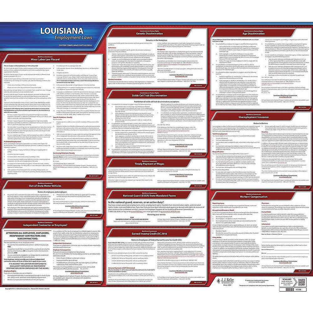 JJ KELLER 100-LA Labor Law Poster State Labor Law LA