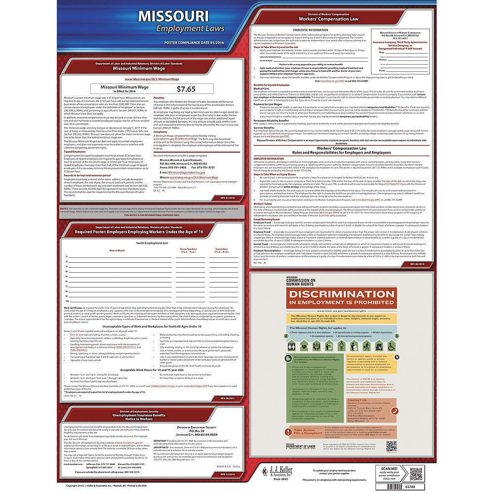 JJ KELLER 100-MO Labor Law Poster State Labor Law MO