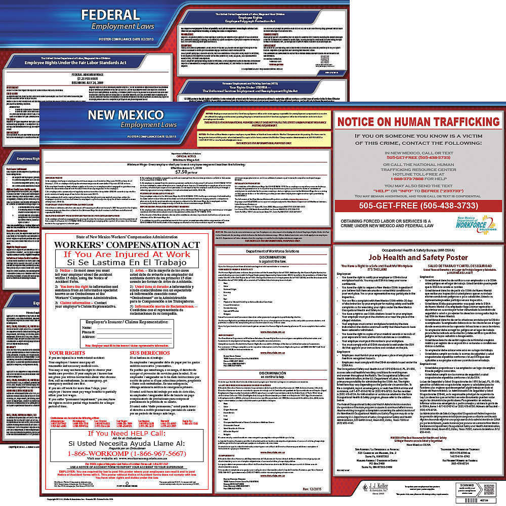 JJ KELLER 100-NM-3 Labor Law Poster Federal and State NM ENG 20 Inch Height 3 Year