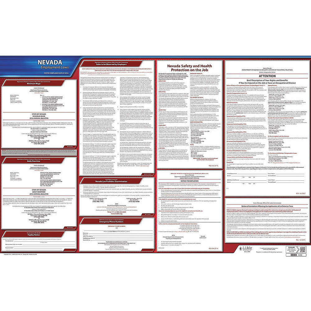 JJ KELLER 100-NV Labor Law Poster State Labor Law NV