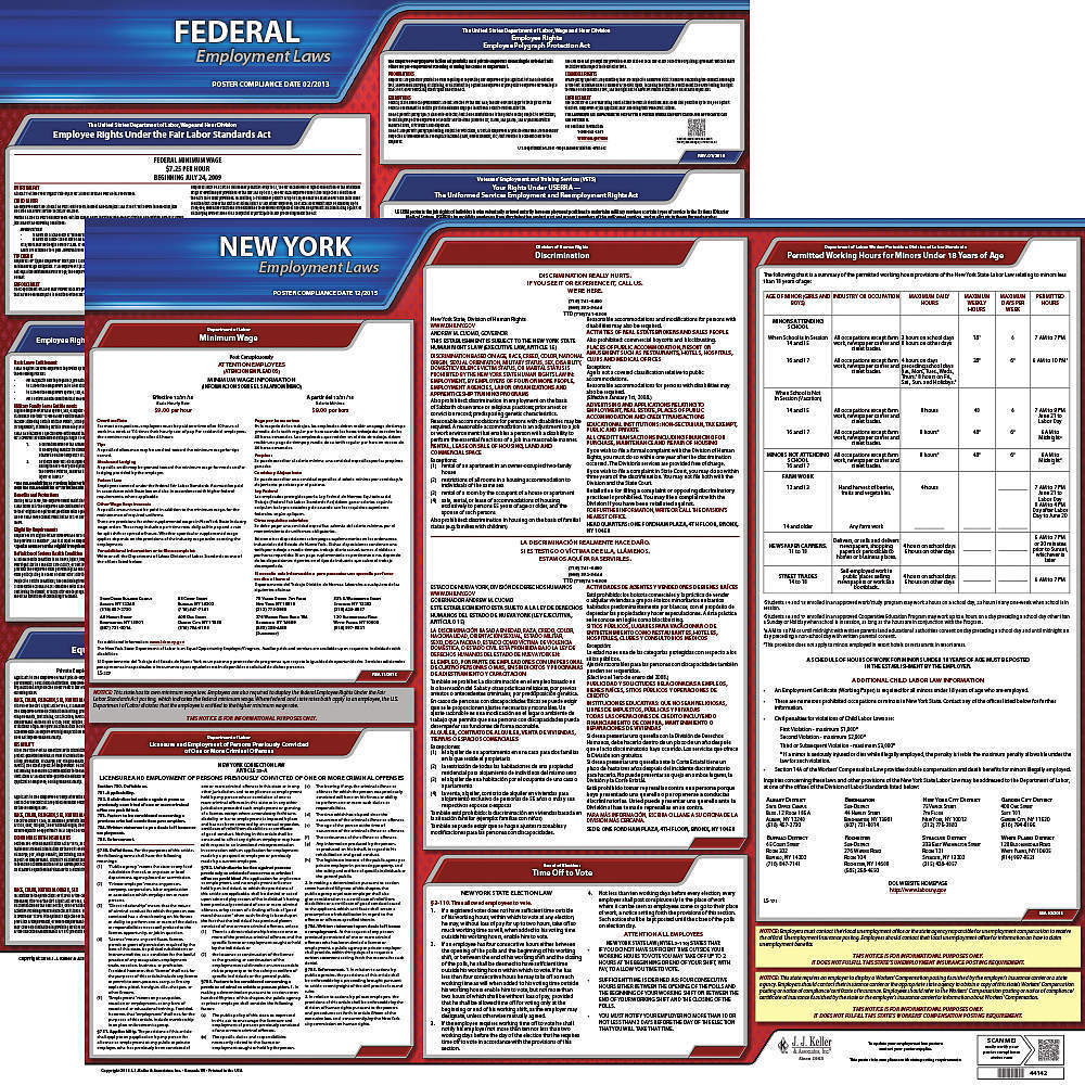 JJ KELLER 100-NY-3 Labor Law Poster Federal and State NY ENG 20 Inch Height 3 Year