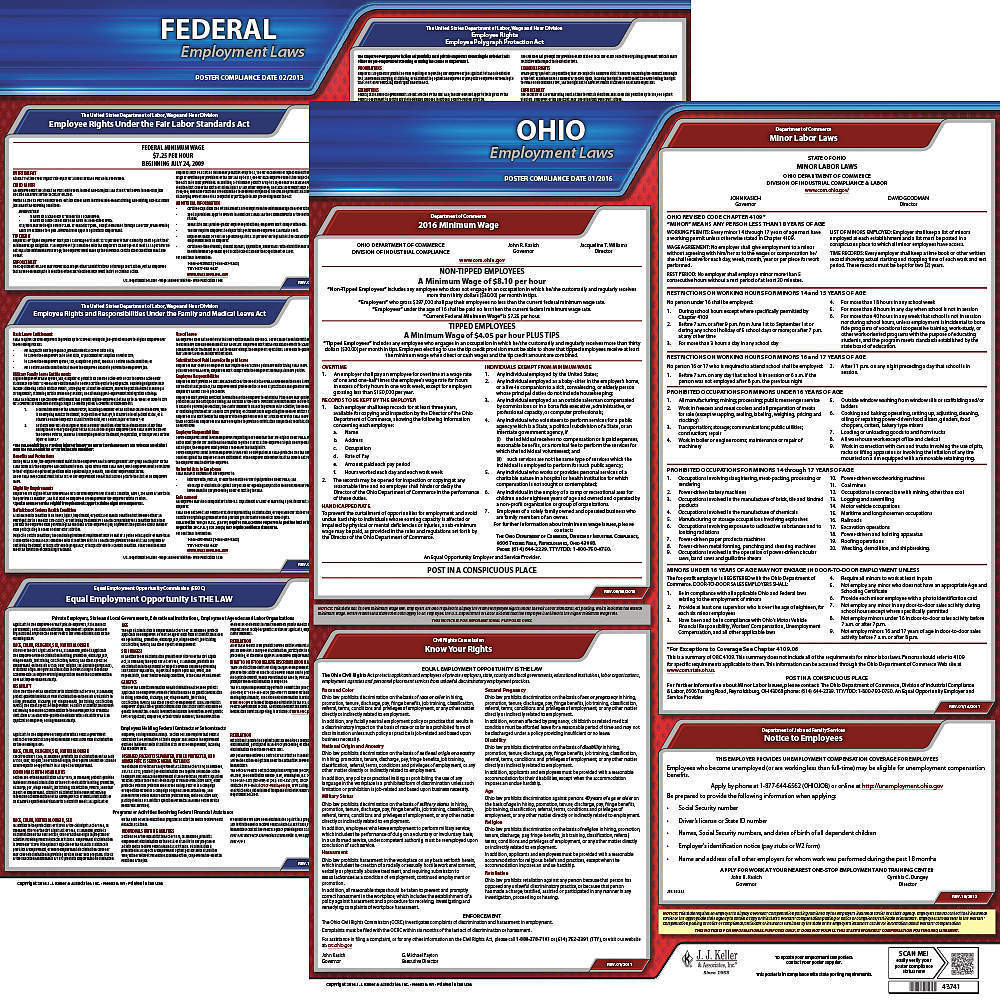 JJ KELLER 100-OH-3 Labor Law Poster Federal and State OH ENG 20 Inch Height 3 Year