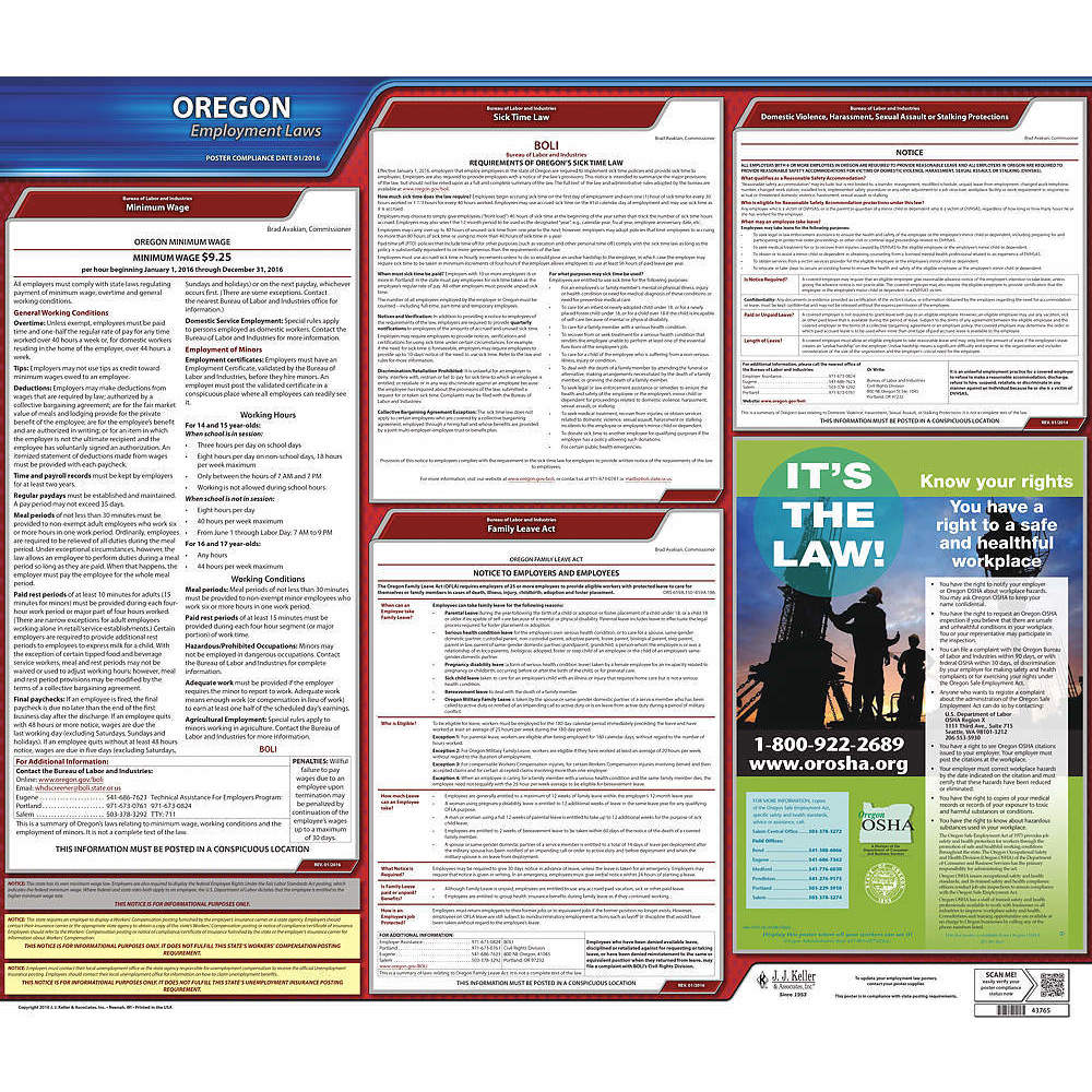 JJ KELLER 100-OR Labor Law Poster State Labor Law OR