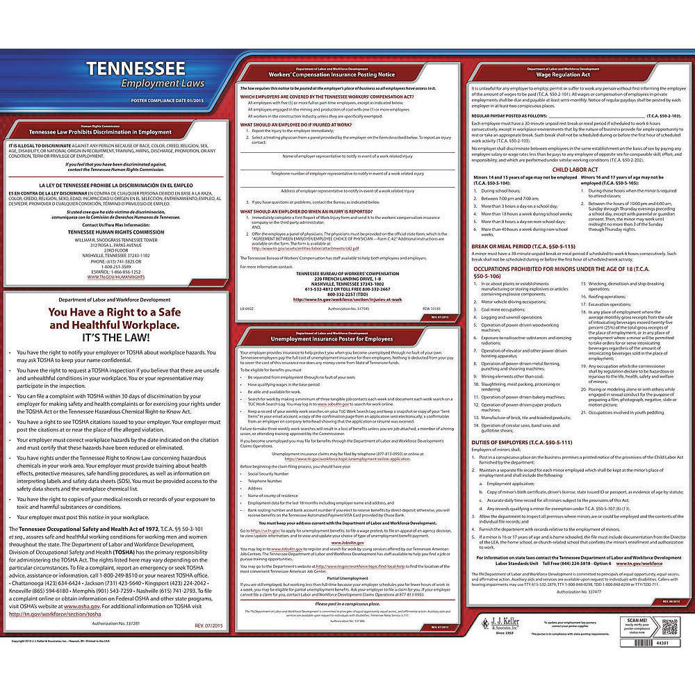 JJ KELLER 100-TN Labor Law Poster State Labor Law TN