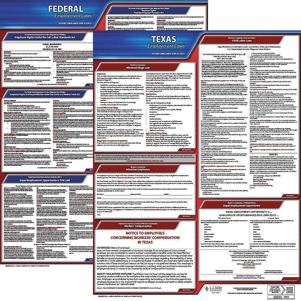 JJ KELLER 100-TX-3 Labor Law Poster STA TX ENG 26Wx20 Inch Height 3 Year