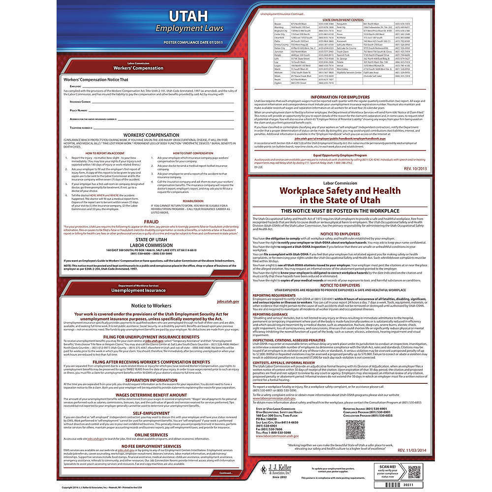 JJ KELLER 100-UT Labor Law Poster State Labor Law UT