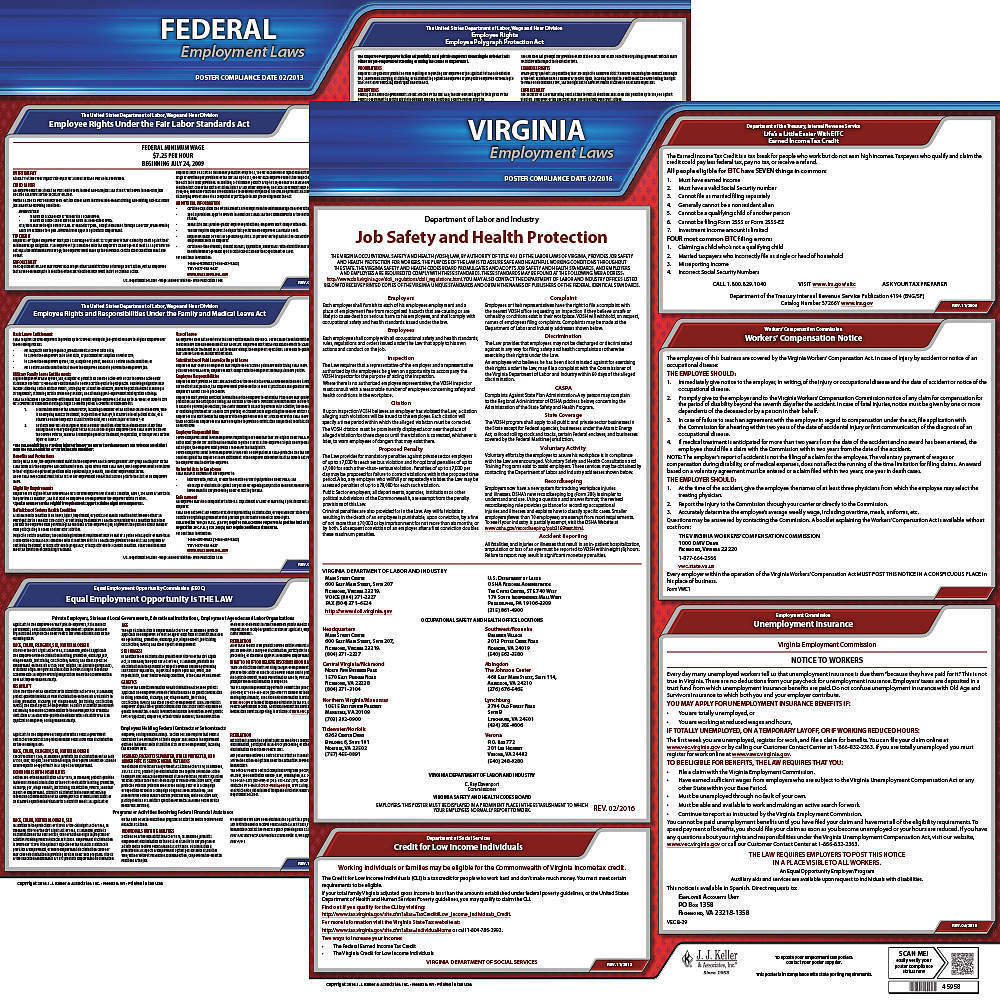 JJ KELLER 100-VA-1 Labor Law Poster Federal and State VA ENG 20 Inch Height 1 Year
