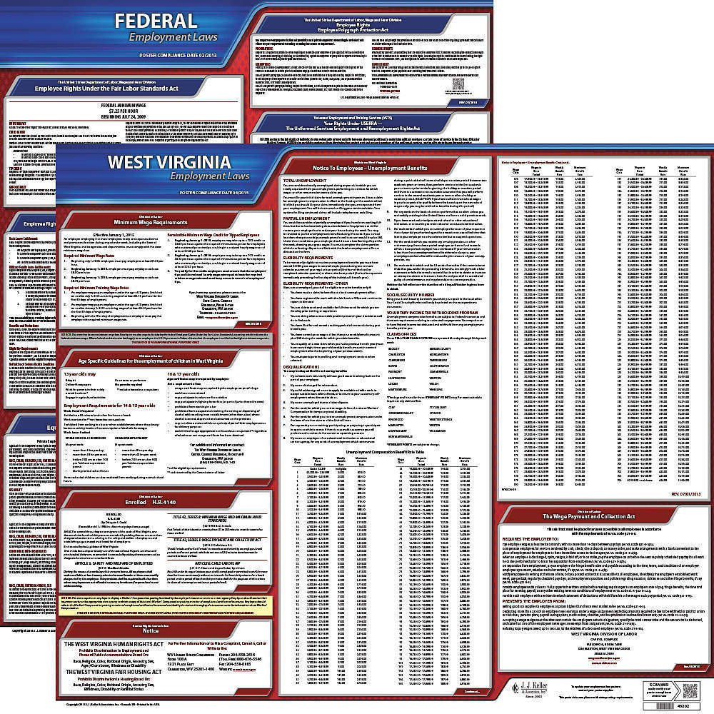 JJ KELLER 100-WV-5 Labor Law Poster Federal and State WV ENG 20 Inch Height 5 Year