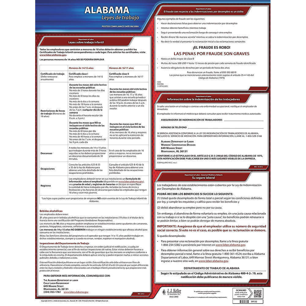 JJ KELLER 200-AL Labor Law Poster State Labor Law AL