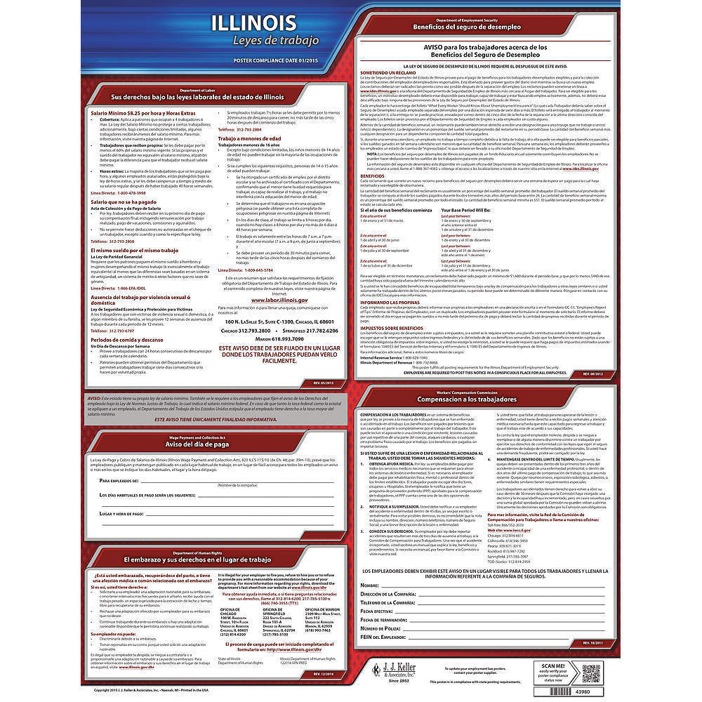 JJ KELLER 200-IL Labor Law Poster State Labor Law IL