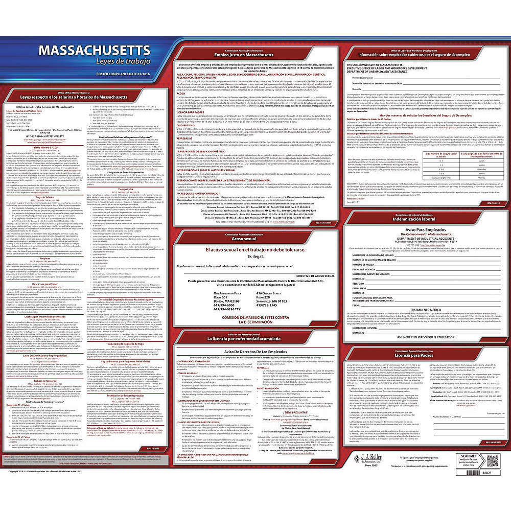 JJ KELLER 200-MA Labor Law Poster State Labor Law MA