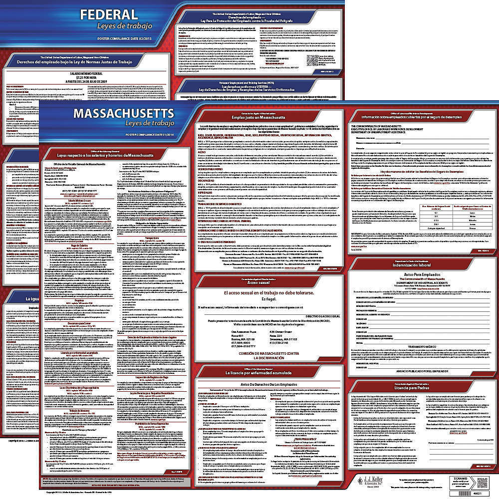 JJ KELLER 200-MA-3 Labor Law Poster Federal / State MA SP 20 Inch Height 3 Year