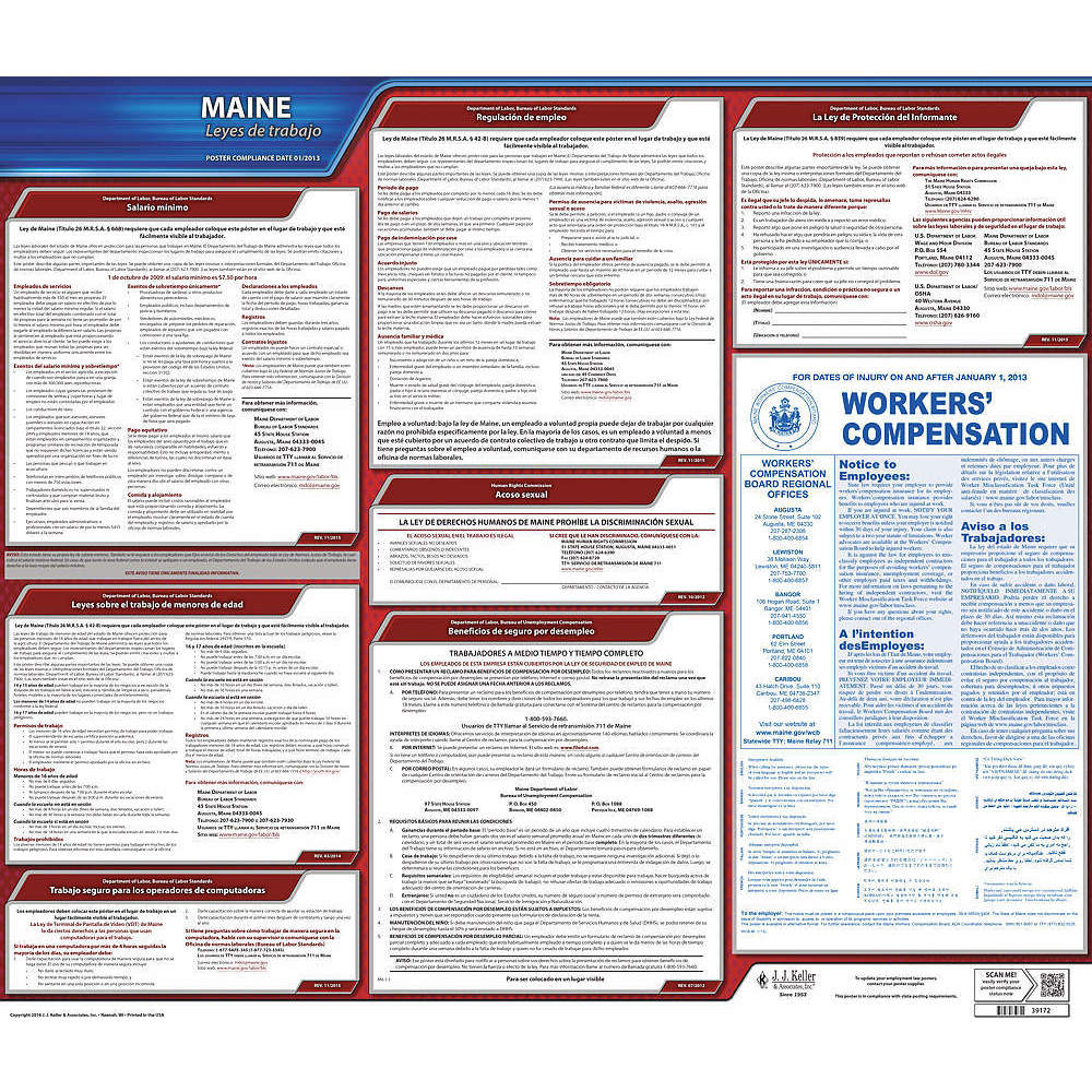 JJ KELLER 200-ME Labor Law Poster State Labor Law ME