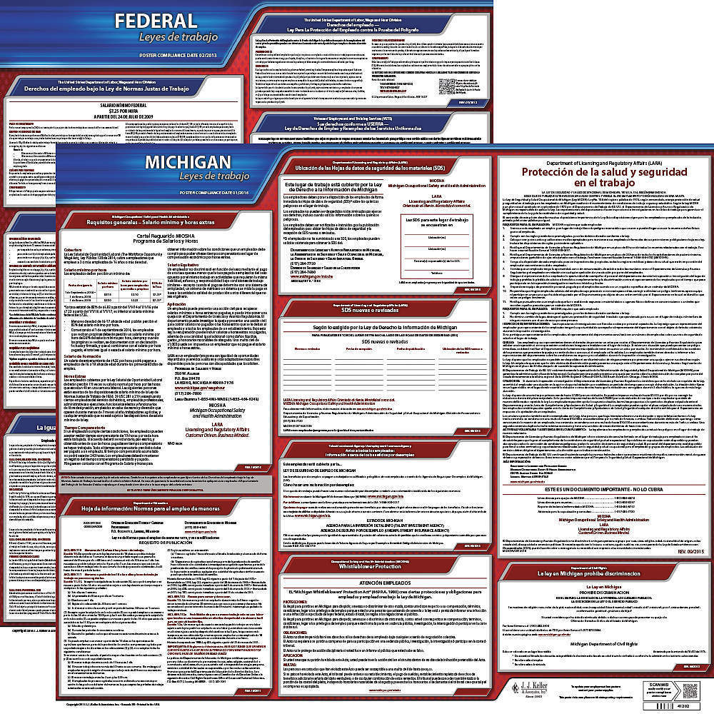 JJ KELLER 200-MI-1 Labor Law Poster Federal and State MI SP 20 Inch Height 1 Year
