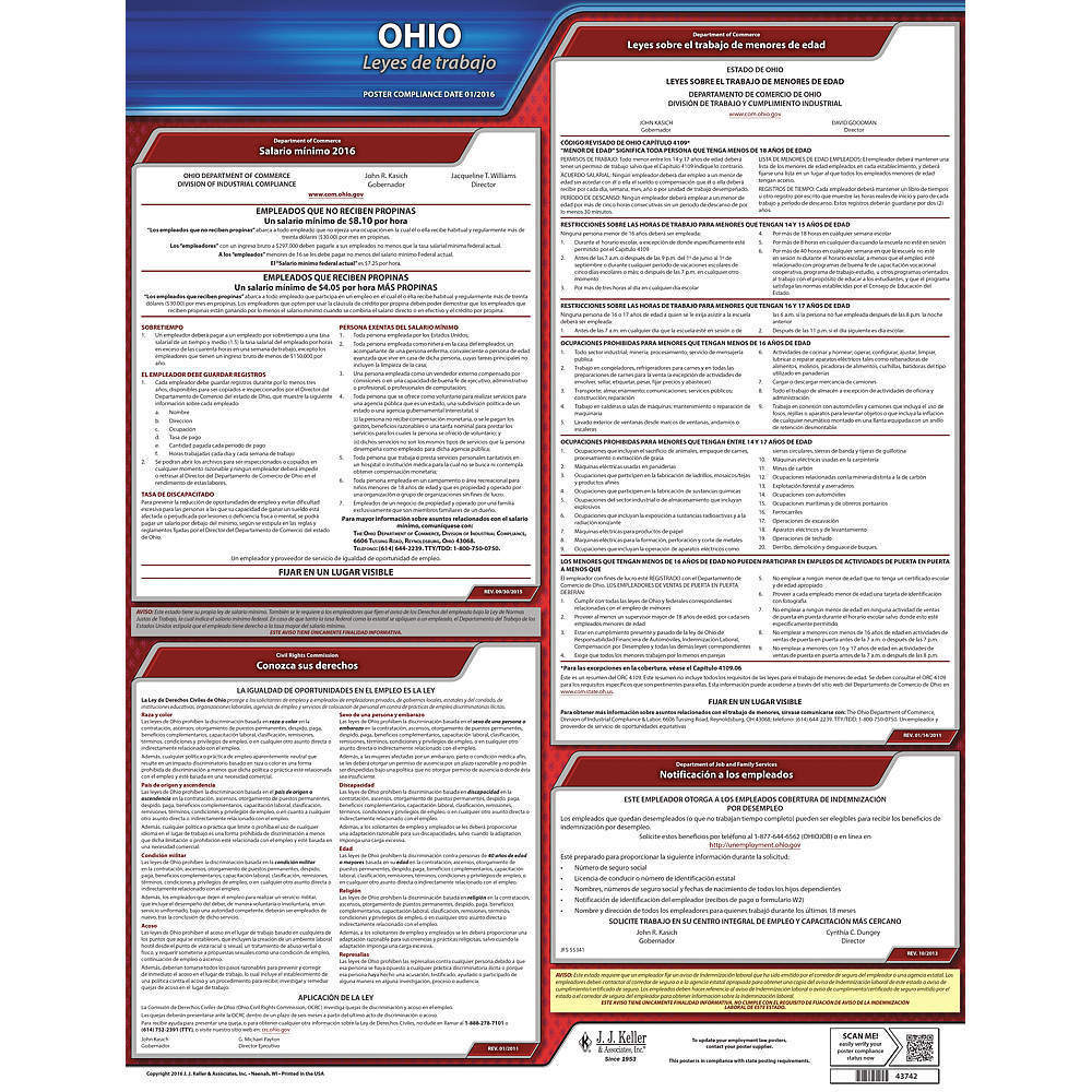 JJ KELLER 200-OH Labor Law Poster State Labor Law OH