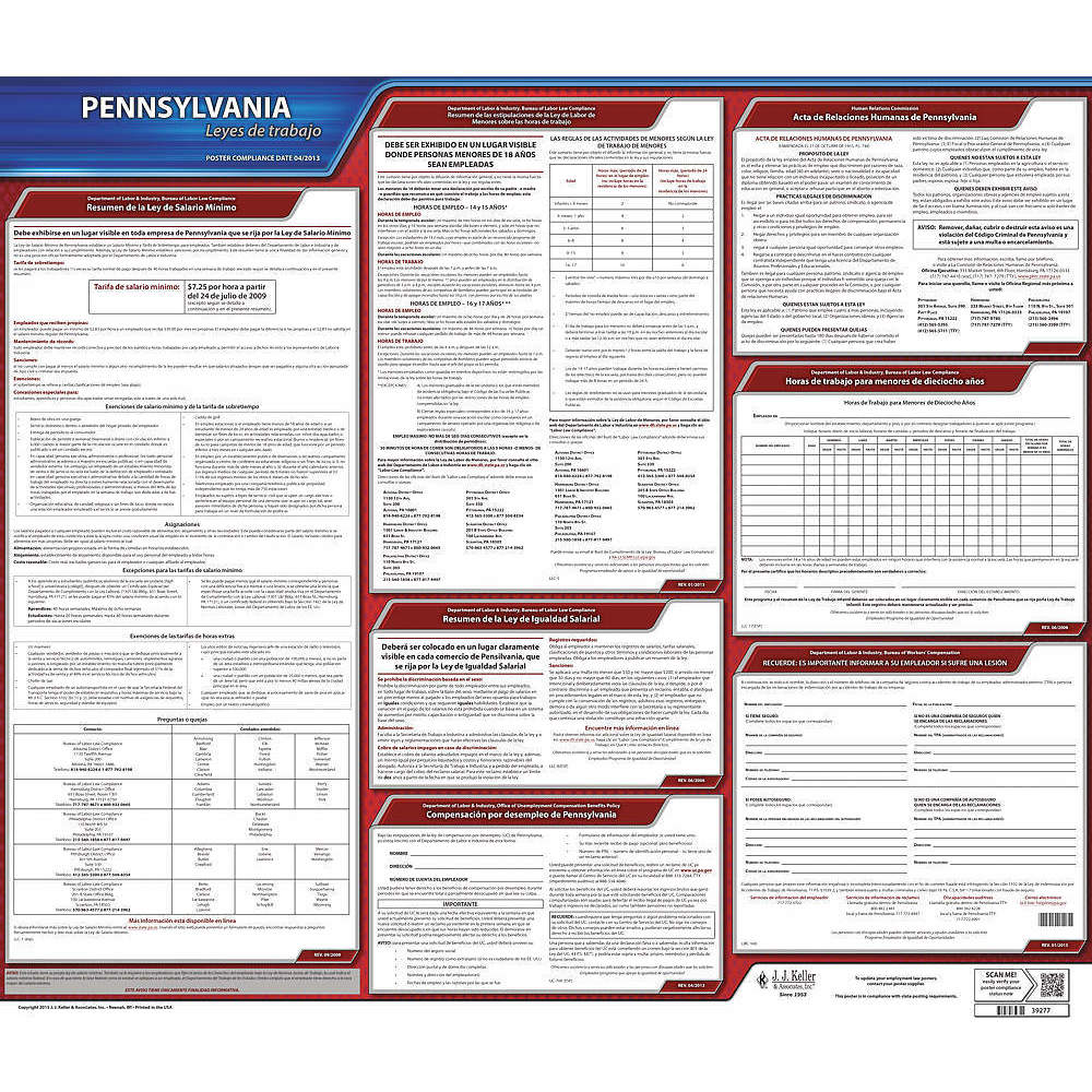 JJ KELLER 200-PA Labor Law Poster State Labor Law PA