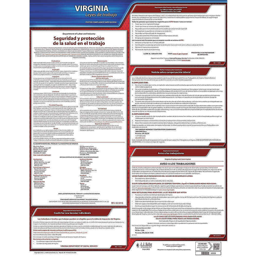 JJ KELLER 200-VA Labor Law Poster State Labor Law VA
