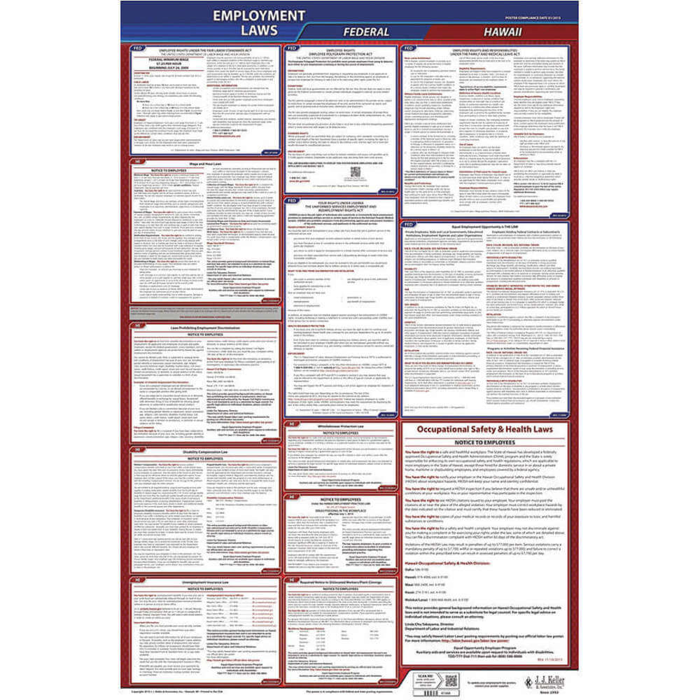JJ KELLER 300-HI-1 Labor Law Poster Federal / State HI ENG 26 Inch Height 1 Year
