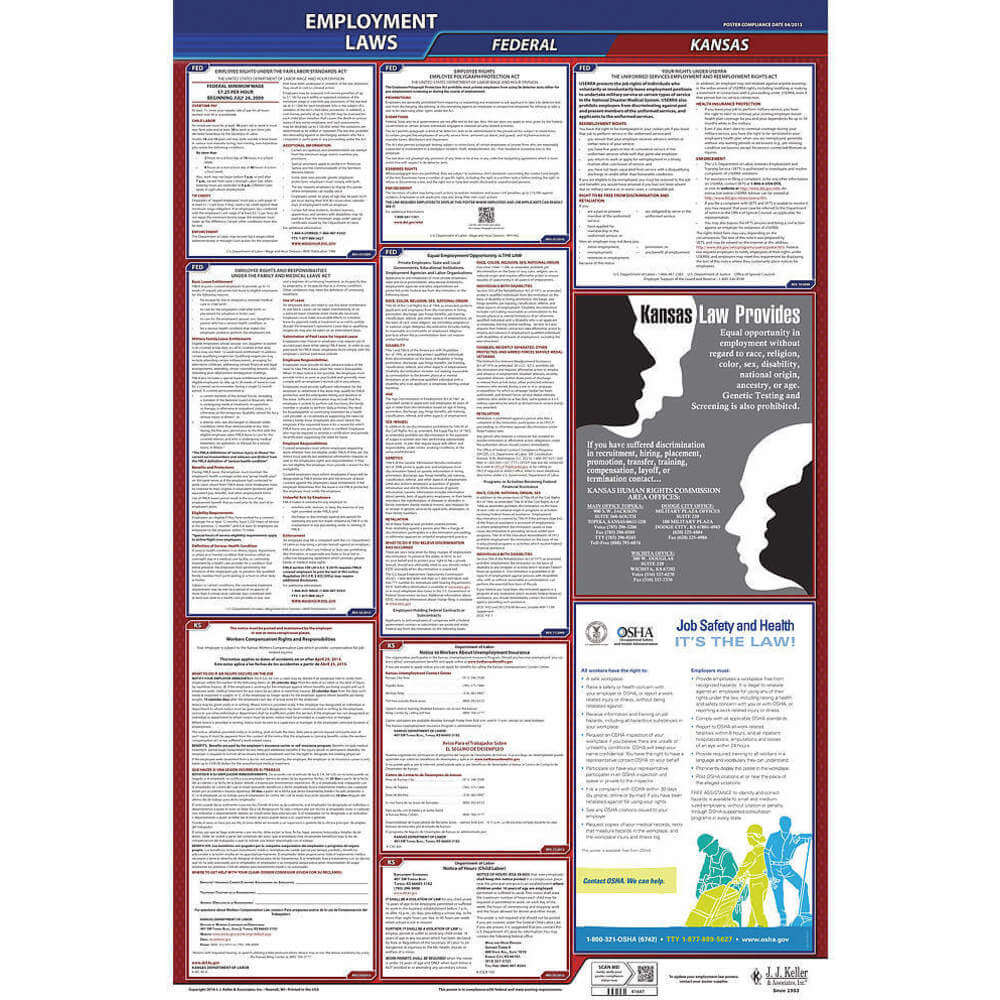 JJ KELLER 300-KS Labor Law Poster Federal and State KS ENG 40Wx26 Inch Height
