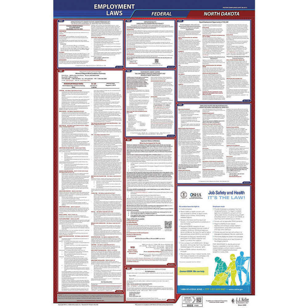 JJ KELLER 300-ND Labor Law Poster Federal and State ND ENG 40Wx26 Inch Height