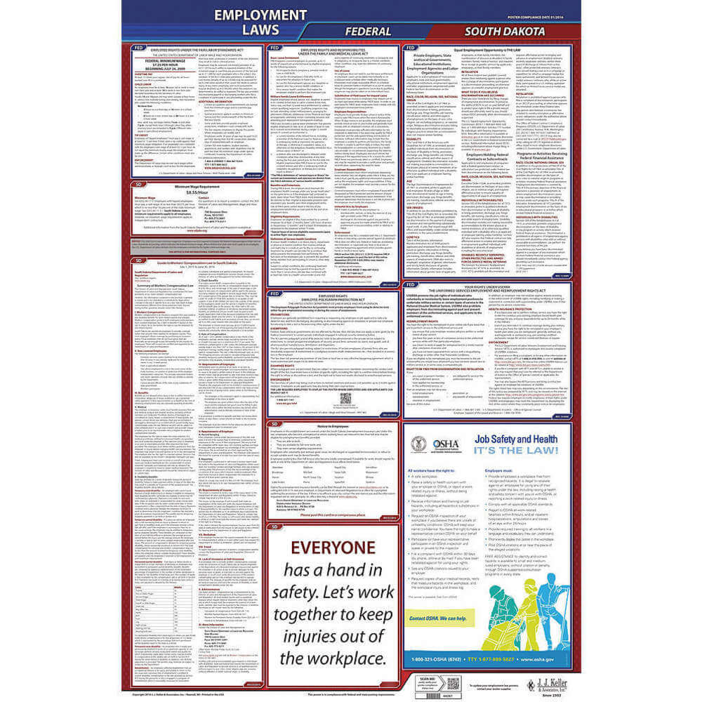JJ KELLER 300-SD-5 Labor Law Poster Federal and State SD ENG 26 Inch Height 5 Year