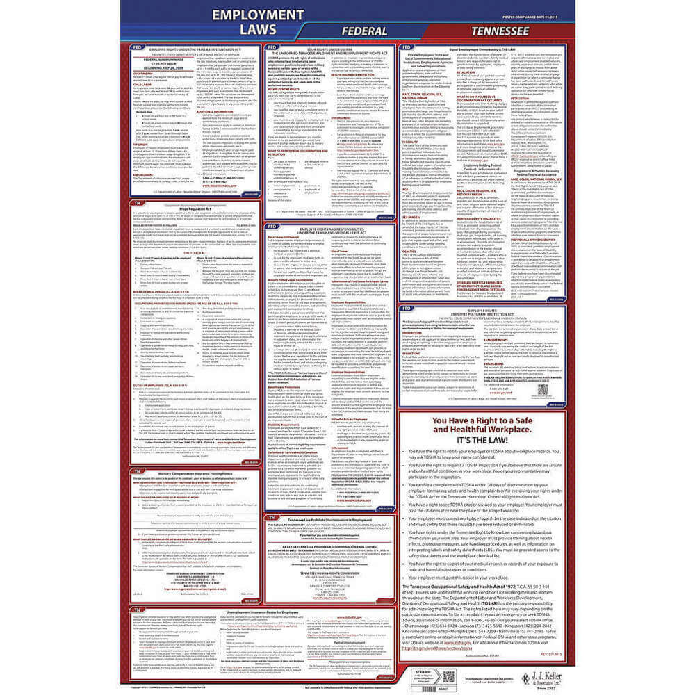 JJ KELLER 300-TN Labor Law Poster Federal / State TN ENG 40Wx26 Inch Height