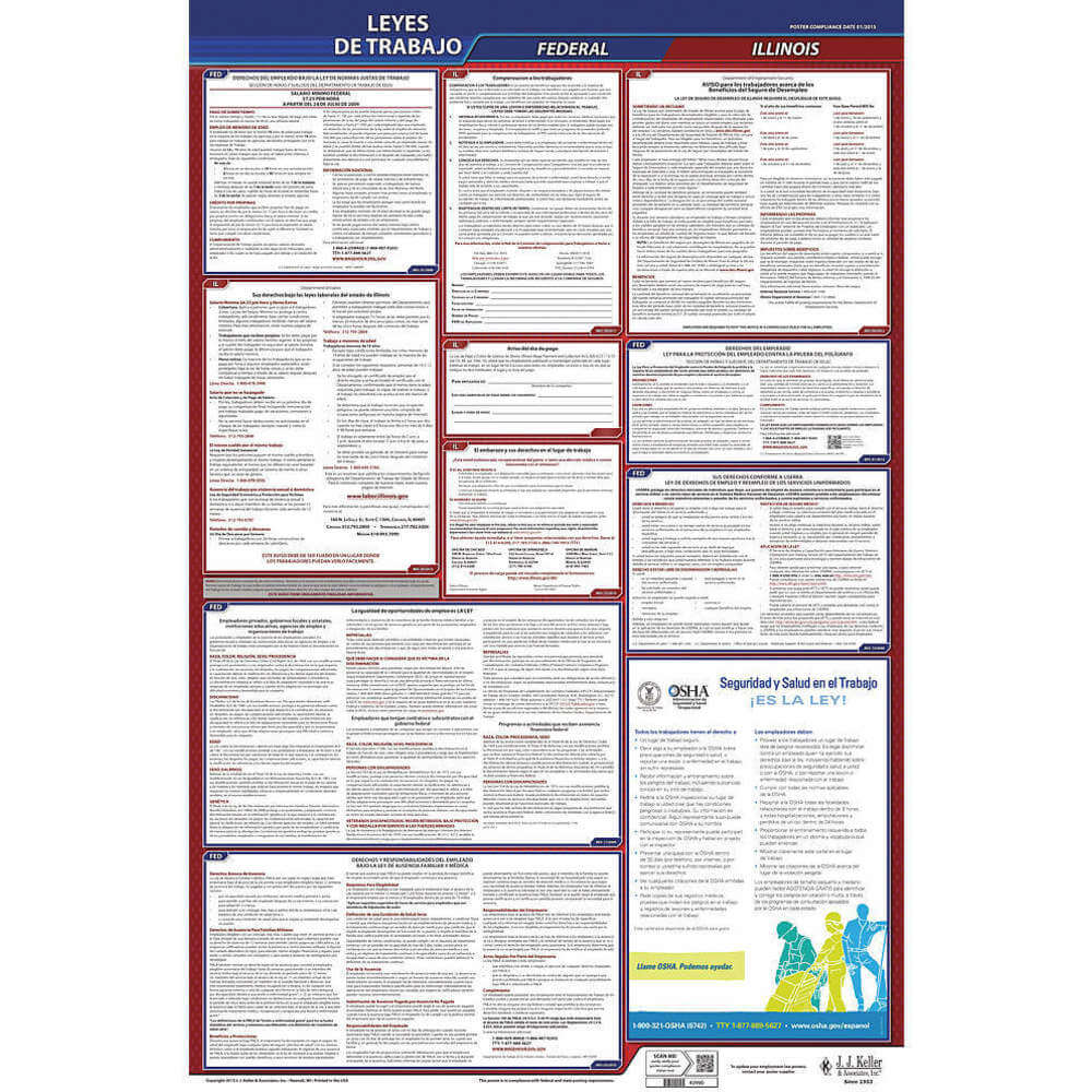 JJ KELLER 400-IL Labor Law Poster Federal / State IL SP 40Wx26 Inch Height