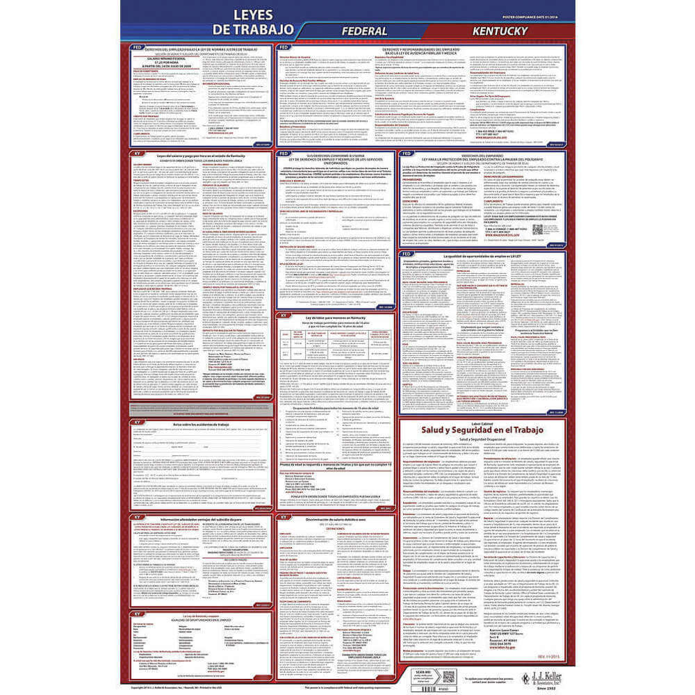 JJ KELLER 400-KY Labor Law Poster Federal / State KY SP 40Wx26 Inch Height