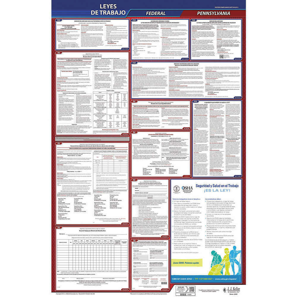 JJ KELLER 400-PA-3 Labor Law Poster Federal / State PA SP 26 Inch Height 3 Year