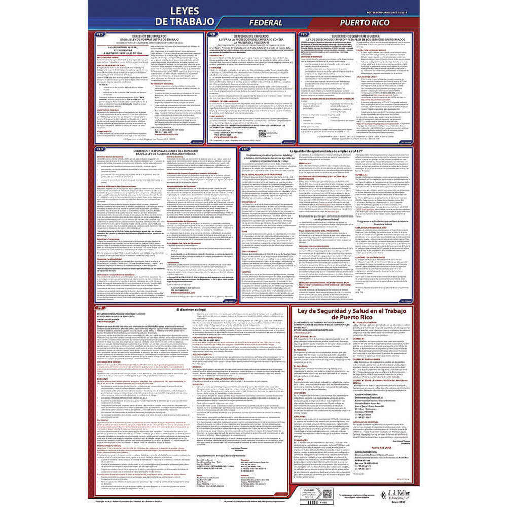 JJ KELLER 400-PR Labor Law Poster Federal / State PR SP 40Wx26 Inch Height