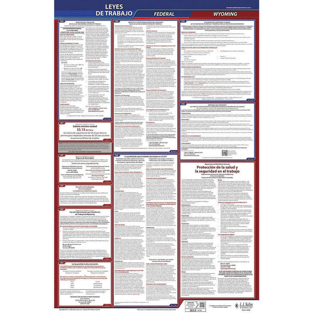JJ KELLER 400-WY Labor Law Poster Federal / State WY SP 40Wx26 Inch Height