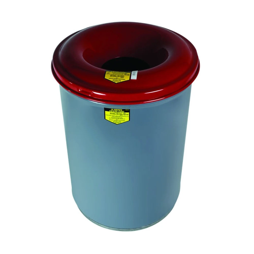 JUSTRITE 26430 Waste Receptacle, Safety Drum Can, Round, 30 Gallon, Gray