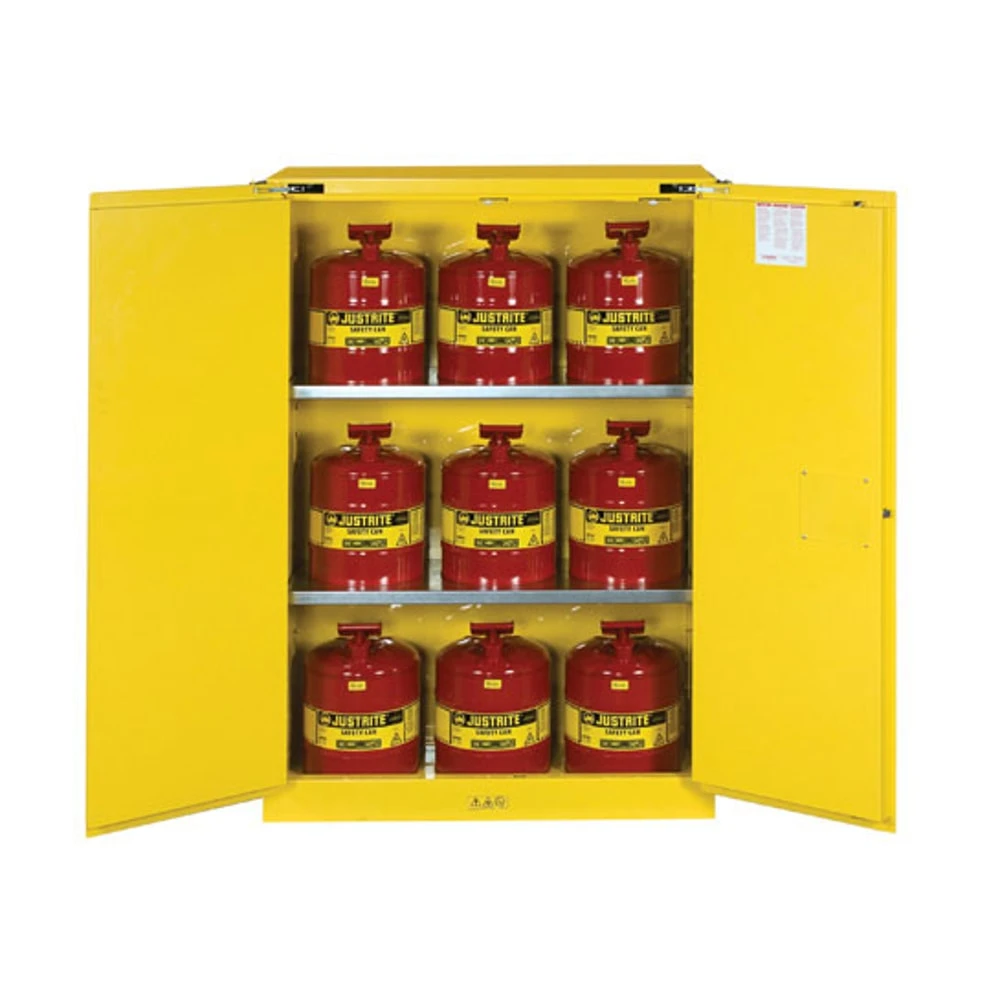 JUSTRITE 8945208 Flammable Safety Cabinet, 2 Door, Self-Close, 9 Cans, 45 Gallon, Yellow