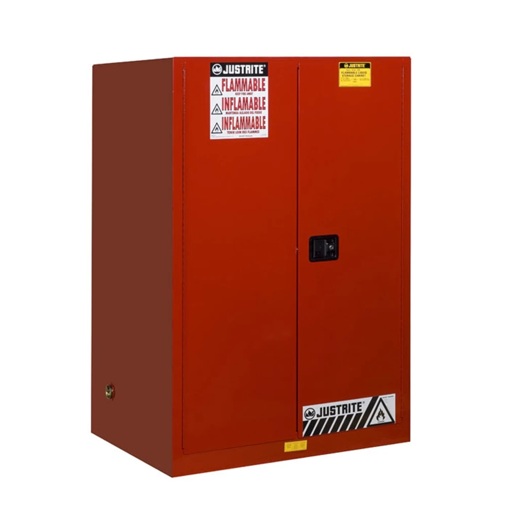 JUSTRITE 899001 8990011 Flammable Safety Cabinet, 2 Shelves, 2 Doors, Manual Close, 90 Gallon, Red