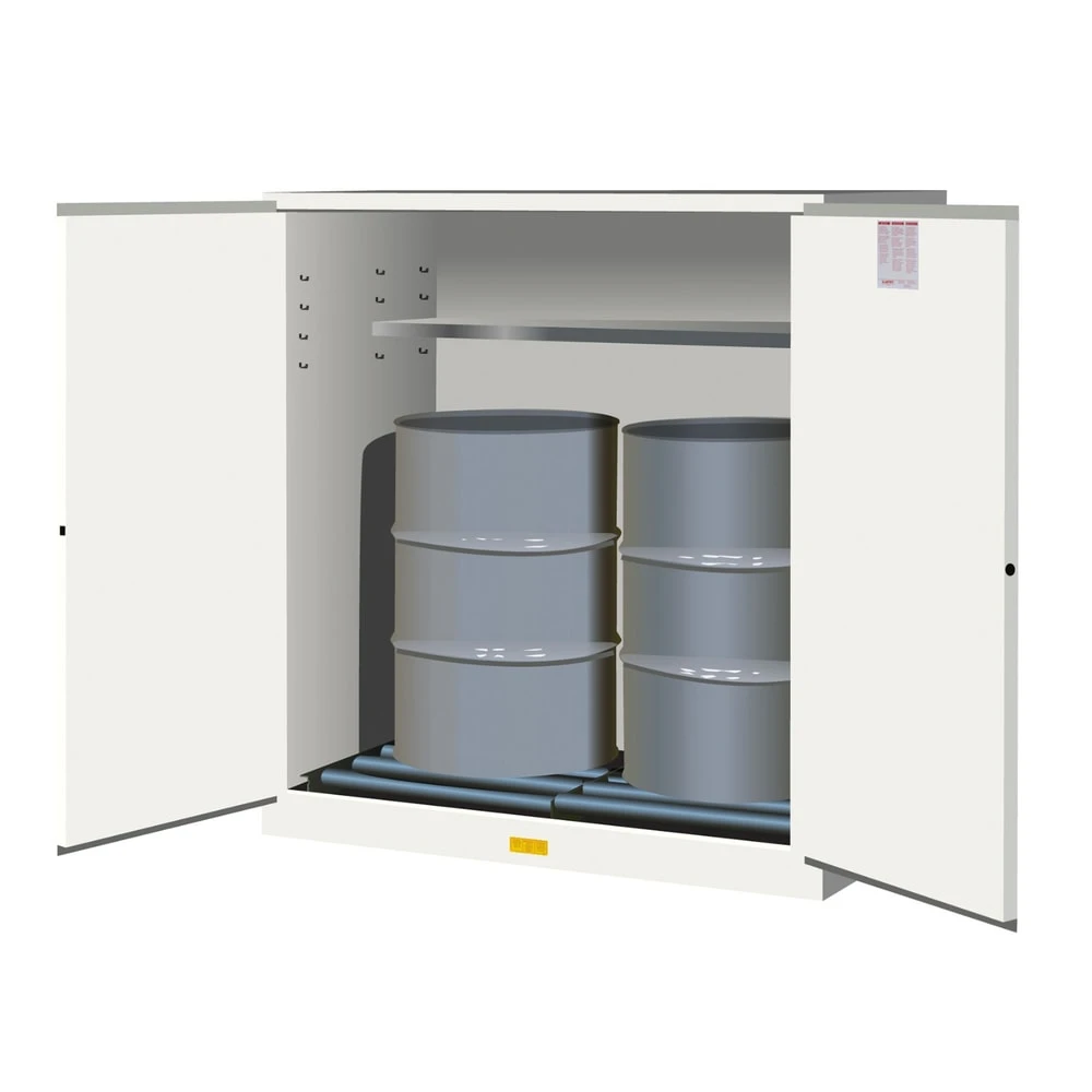 JUSTRITE 899165 Vertical Drum Cabinet, 2 Drum Vertical, 1 Shelf, 2 Doors, 55 Gallon, White