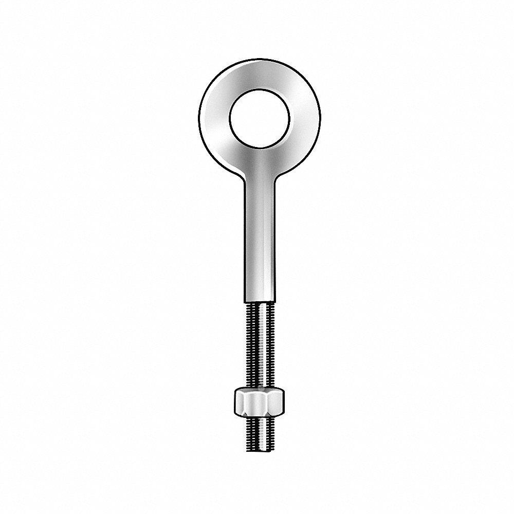 KEN FORGING N2003-SS-2-1/2 Eye Bolt, 3/8 In - 16 Thread Size, Machinery, 1200 lbs. Work Load Limit, Plain